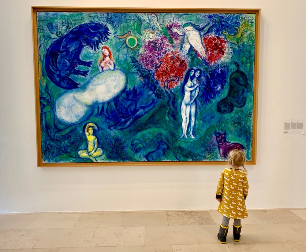 Luise ist begeistert und zeigt alles ihrer „Elsa“, die nun genauestens über Chagalls Engel, fliegende Pferde und geigende Landstreicher Bescheid weiß.