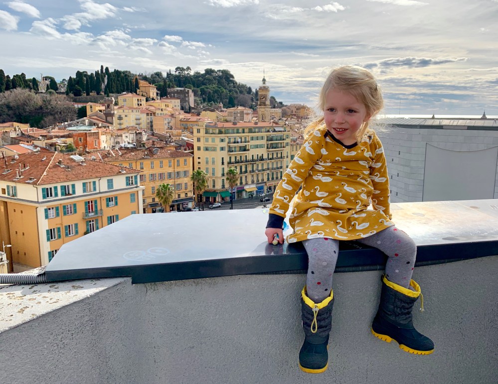 Ganz oben angekommen ist der Blick von der verwinkelten Dachterrasse über die Dächer von Nizza unbeschreiblich schön.