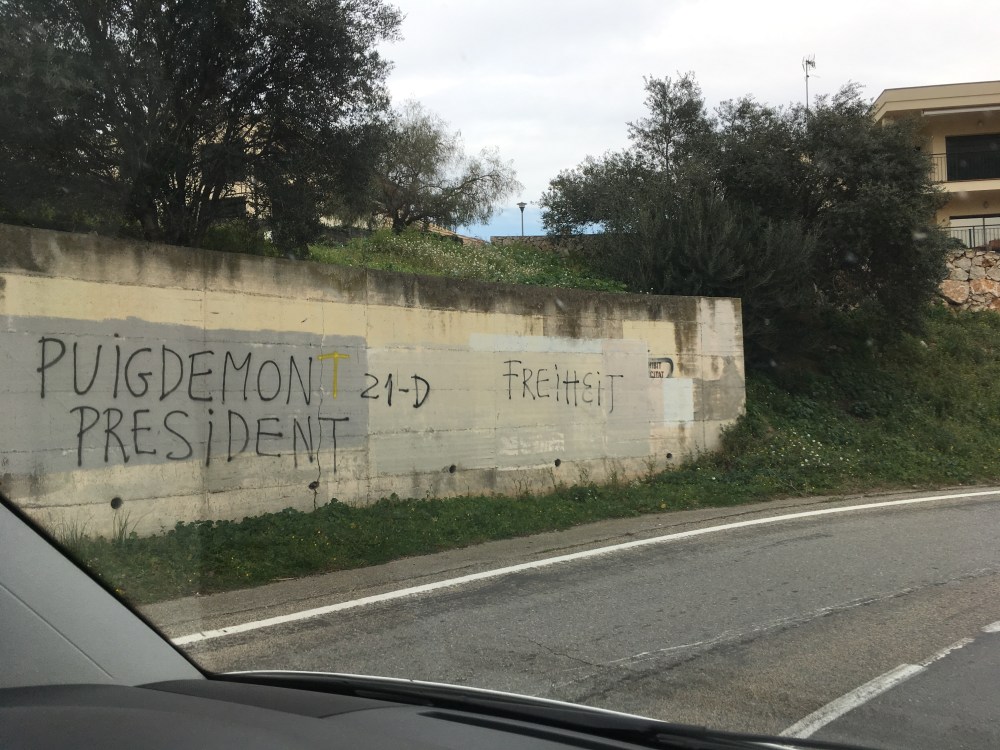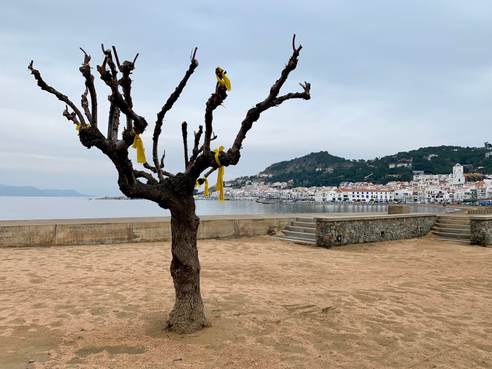 Wir haben noch die französische Wärme und Sonne im Gemüt, als wir am späten Nachmittag über die Grenze nach Katalonien fahren. Nach nur wenigen Kilometern scheint sich das Land komplett zu verändern. Trockene Steppe so weit das Auge reicht, verfallene Beton-Bunker an der Straße und kaum eine Menschenseele auf der Autobahn unterwegs (das mag an den empörend hohen Maut-Gebühren in Spanien liegen). Wir versprechen uns einen lieblichen Badeort am Strand und fahren direkt nach Osten an die Costa Brava. Quasi jede Mauer ist hier mit Freiheits- und Unabhängigkeitssprüchen besprüht, an jeder Straßenlaterne kleben gelbe Schleifen, Katalanische Flaggen hängen vor den Fenstern. Auf der Straße vor allem ältere Herrschaften mit gelben Halstüchern und Anstecknadeln. Was hier die Einwohner bewegt, ist nach fünf Minuten klar: Katalonien kämpft für seine Unabhängigkeit von Spanien.