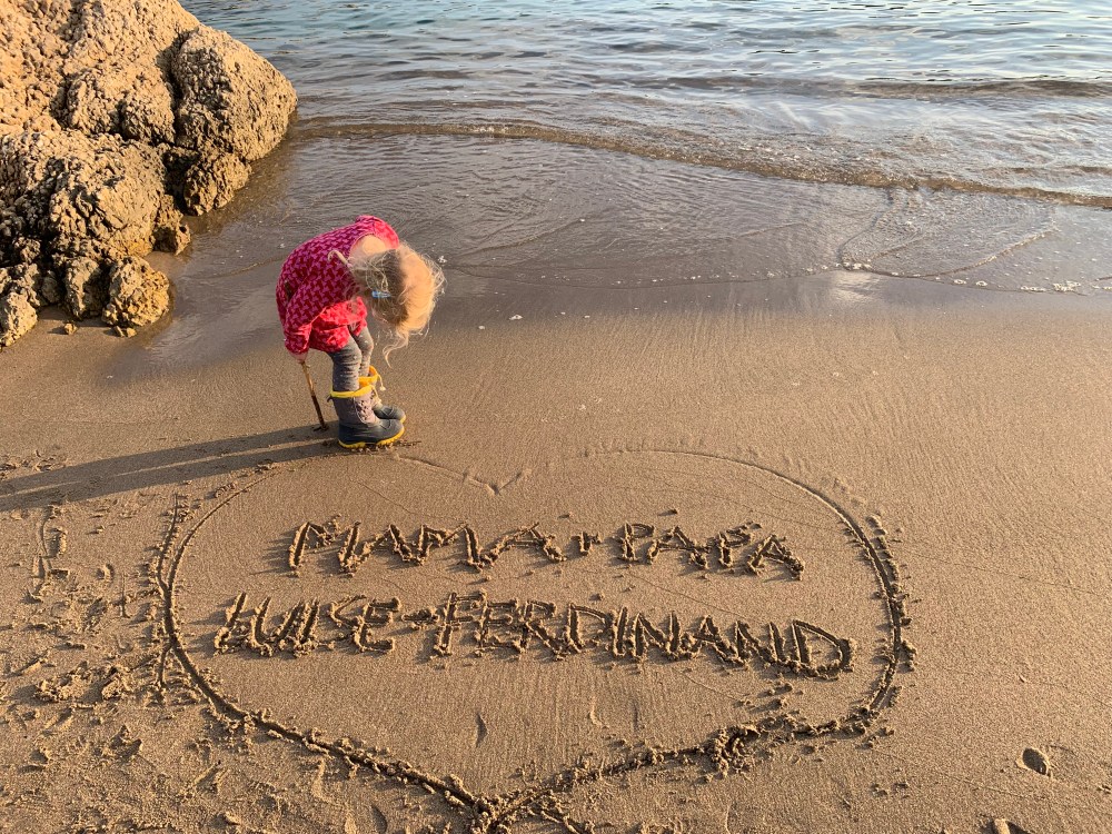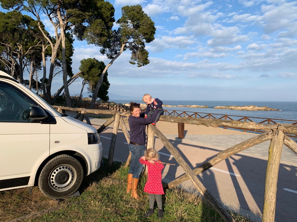 Obwohl es nachts sehr kalt ist, sind wir mit unserer Standheizung bestens gerüstet (das Klappdach bleibt aber nach wie vor zu) und tagsüber wird es in der windgeschützten Bucht so warm, dass Luise nach kurzen Hosen verlangt.
