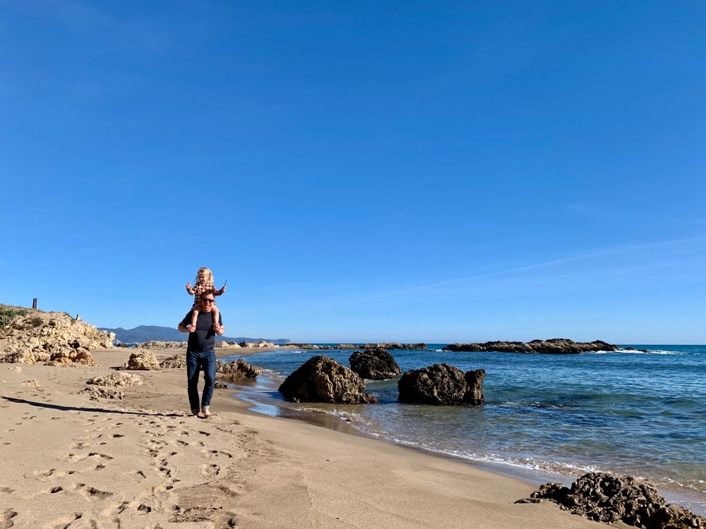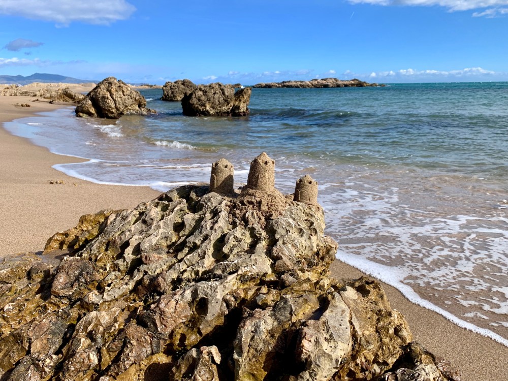 Auf dem schnellsten Wege verlassen wir Figueres und fahren ans Meer, an einen Ort, der mir am freundlichsten und am wenigsten surrealistisch erschien. Wir landen tatsächlich direkt am Strand neben alten römischen Ausgrabungen, die im Winter aber nicht zu besichtigen sind und deshalb der Parkplatz von Wohnmobilen genutzt werden kann.