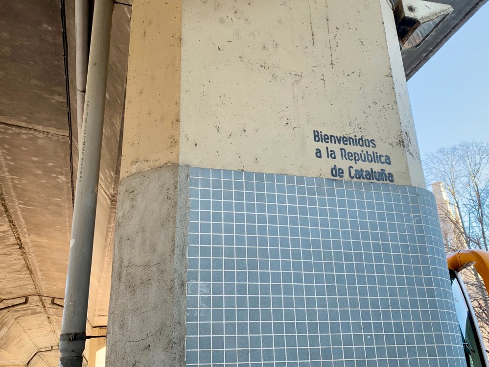 Doch auch in Girona ist der Geist der Bewohner nicht zu übersehen. Wieder an allen Fenstern katalanische Flaggen, gelbe Anstecknadeln am Revers, Sprüche an den Säulen und sogar eine große Demonstration, zu der am Abend die halbe Stadt mit Bannern und gelben Tüchern hinströmt.